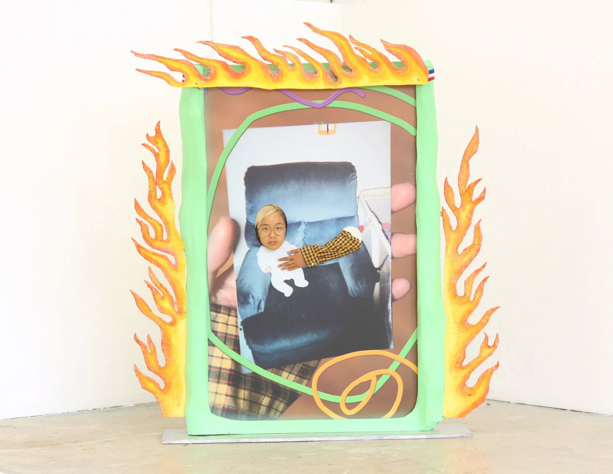 Put your head in as my head, as a baby. Your arm is hugging yourself, as me, as a baby.